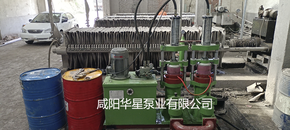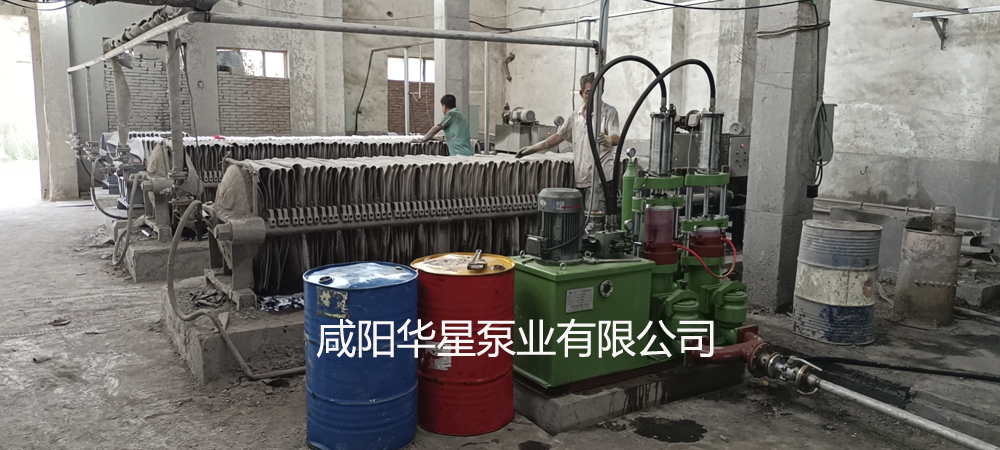 一臺華星YBH壓濾機(jī)專用節(jié)能泵給4臺壓濾機(jī)進(jìn)料